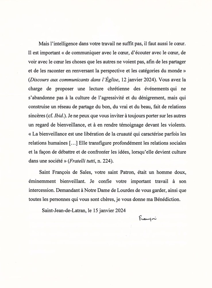Courier lu à Lourdes par le Nonce Apostolique, le 25 janvier 2024.