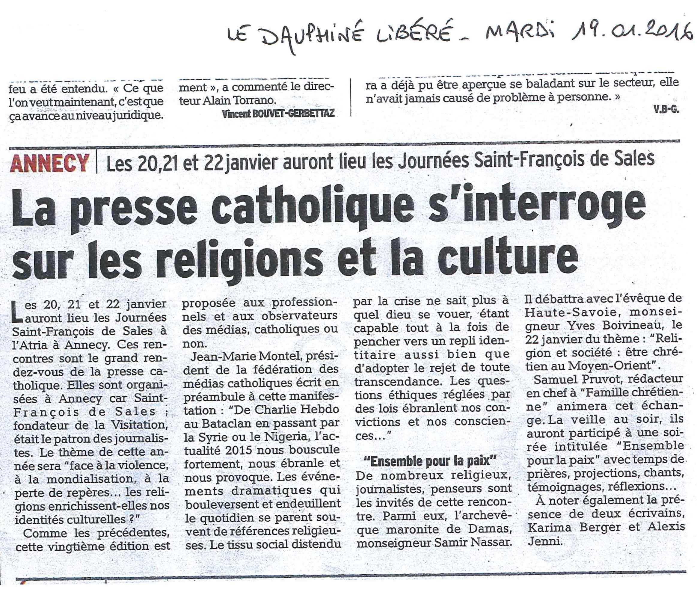 Le Dauphiné Libéré 19 01 2016 Religions et culture