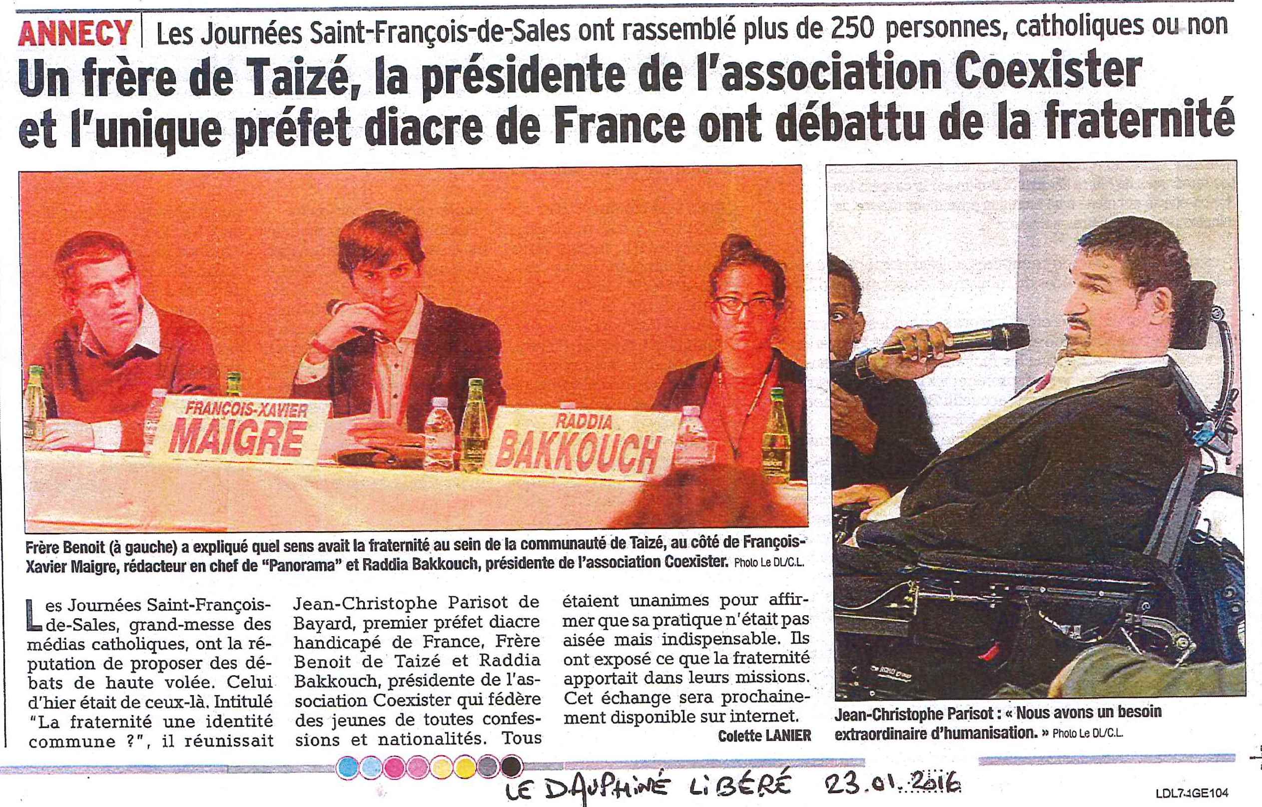 Le Dauphiné Libéré 23 01 2016 La fraternité
