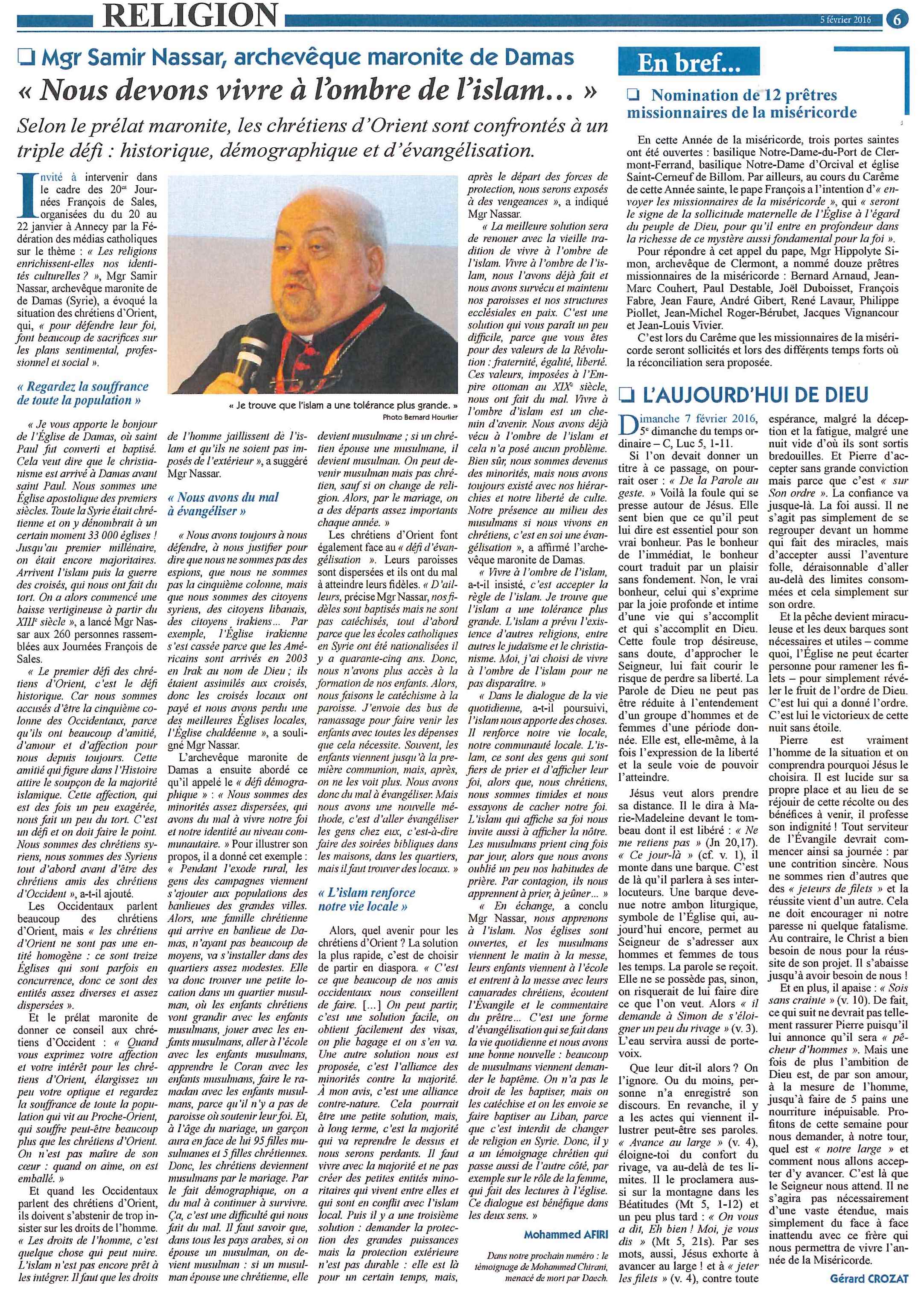 Le Semeur Hebdo 5 02 2016 Mgr Samir Nassar